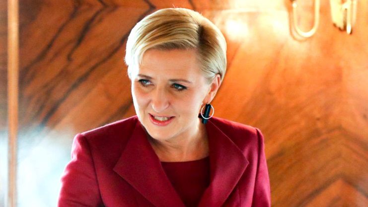 Agata Duda stawia na ognistą czerwień i wyjątkową torebkę. To kolejny prezent?