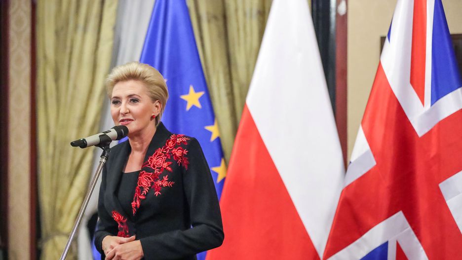 Agata Kornhauser-Duda w piątek była obecna w londyńskiej siedzibie ambasady RP, na uroczystości wręczenia odznaczeń państwowych przyznanych przez Andrzeja Dudę osobom zasłużonym w działalności na rzecz oświaty polonijnej i polskiej za granicą. Na tę okazję pierwsza dama wybrała czarny komplet, natomiast w sobotę, kiedy pojawiła się w sobotniej szkole polonijnej, postawiła na biel.
