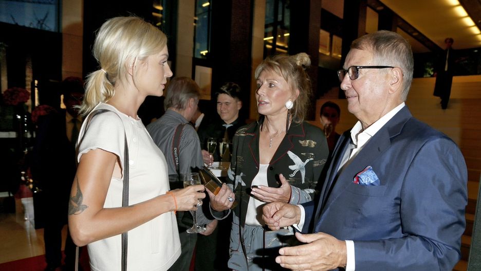 Agnieszka Szulim na wernisażu prac Ryszarda Winiarskiego