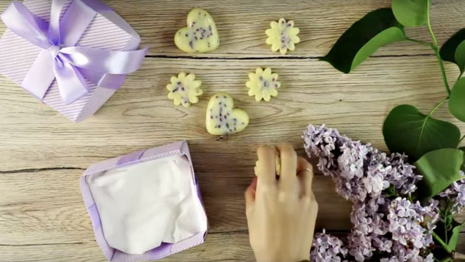 Całość podgrzej do rozpuszczenia. Dodaj kilka kropel wody różanej i olejku z witaminą A. Mieszankę przelej do formy. Udekoruj dowolnymi kwiatami i wstaw do lodówki na 20 minut. Gotowe!