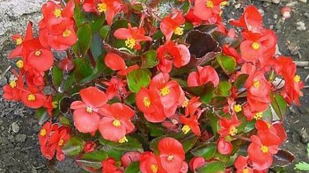 Spośród wielu odmian begonii stale kwitnącej do najładniejszych należą begonie o zielonych liściach i kwiatach w różnych odcieniach różu, a także odmiany o czerwonych kwiatach i ciemnoczerwonych liściach.