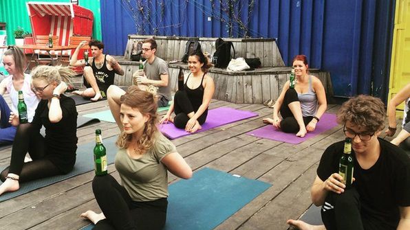 I daje się to odczuć od pierwszej minuty. Zajęcia rozpoczynają się od łyku piwa, po czym uczestnicy siadają po turecku, z butelką pomiędzy nogami, i wyciszają się, wyrównując oddech. Następnie przechodzi się do standardowych pozdrowień słońca, ale tutaj nazywają się one pozdrowieniami piwa.