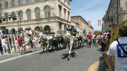 Brutalna corrida wydaje się być jednak ulubioną rozrywką tego regionu Prowansji, a czarny byk stanowi symbol corocznego święta, które odbywa się w Nimes w Zielone Świątki. Jego imponujący posąg stoi na avenue Jean – Jaures w centrum miasta. To święto to prawdziwie hiszpańska fiesta z jedzeniem, piciem, muzyką i tańcami od rana do późnej nocy, trwająca pięć dni. I oczywiście z walkami byków, które odbywają się nawet dwa razy w ciągu jednego dnia.