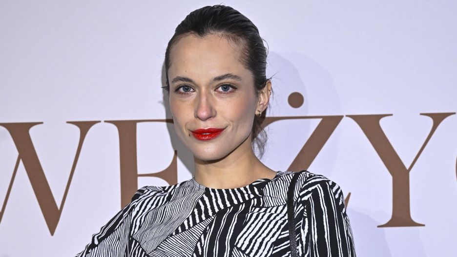 Aktorka wybrała sukienkę midi w czarno-białej kolorystyce, utrzymaną w dynamiczne, geometryczne pasy i nieregularne linie. Fason z długim rękawem i wyraźnym rozcięciem na nodze podkreślał sylwetkę, a jednocześnie nadawał stylizacji lekkości. Wzorzysta tkanina przyciągała uwagę, ale nie dominowała całości.