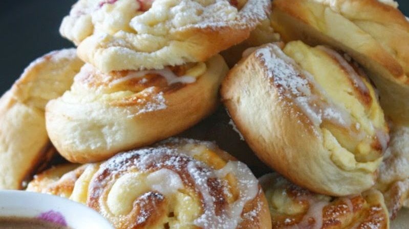 Domowe drożdżówki z serem, lukrem i cukrem pudrem