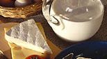 Twaróg Jak go przygotować *Pasteryzowane (nie UHT) mleko pozostaw na 2-3 doby w temperaturze pokojowej, by skwaśniało. Wlej do garnka i ogrzewaj do 40°C, aż zacznie się oddzielać serwatka. Odcedź na gęstym sitku, schłodź.