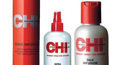 Trzy rodzaje odżywek firmy Farouk Systems z linii CHI: CHI Silk Infusion, CHI Keratin Mist, CHI Shine Infusion to profesjonalne kosmetyki do włosów. Dostępne są w postaci płynu, mgiełki oraz sprayu. Charakteryzują się właściwościami regenerującymi, nawilżającymi oraz nabłyszczającymi.