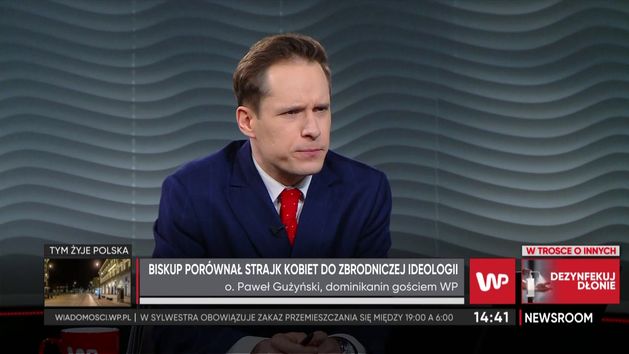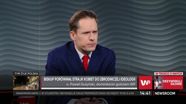 Ojciec Paweł Gużyński, dominikanin w programie "Newsroom" WP odpowiedział na pytanie dotyczące kontrowersyjnych słów biskupa Szlachetki, który porównał Strajk Kobiet do zbrodniczej ideologii. - Należy powiedzieć że to jest bardzo typowa dla wielu biskupów "domorosła historiozofia". Ona się bierze z tego, że na zasadzie wolnych skojarzeń, które powstają w głowie, w duszy biskupa, tworzą sobie pewien obraz rzeczywistości" - mówił duchowny. "Te słowa biskupa wynikają z tak nieporadnego sposobu posługiwania się rozumem, tak to delikatnie ujmijmy" - podsumował o. Gużyński.