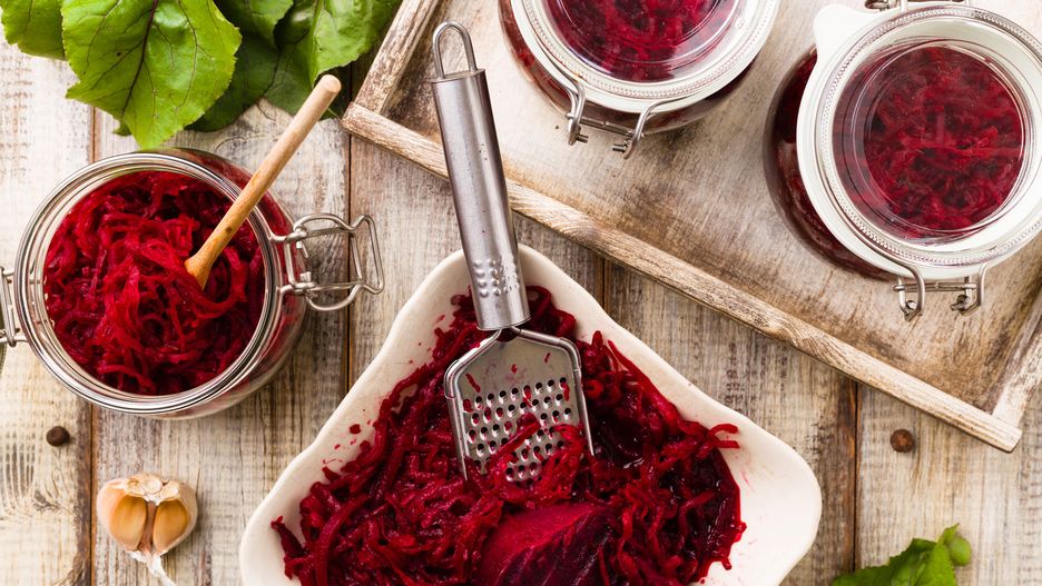 Burak to prawdziwa skarbnica wartości odżywczych, na dodatek ma tylko 43 kalorie w 100 gramach. Znajdziemy w nim magnez, fosfor, żelazo, mangan, miedź, potas i cynk, a także witaminę C, z grupy B, błonnik, fitosterole roślinne i przeciwutleniacze. Dzięki temu obniżają ciśnienie krwi, wzmacniają odporność, zapobiegają anemii, odkwaszają organizm, działają antynowotworowo i spowalniają procesy starzenia. Regularne jedzenie buraków pomaga zmniejszyć stres i poprawić nastrój.