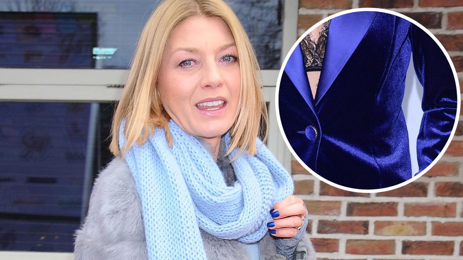 Edyta Olszówka w welurowym garniturze. Specjalnie pokazała bieliznę