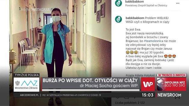 Afera, która wybuchła po publikacji kontrowersyjnego wpisu na profilu szpitala ginekologiczno-położniczego w Oleśnicy, przybiera na sile. Coraz więcej osób mówi stanowcze "nie" takiemu traktowaniu pacjentek. "Otyłość to jest choroba" - mówi w programie Newsroom WP dr Socha, ginekolog. Podkreśla, że poniżanie pacjentek, które są w ciąży, a jednocześnie mają nadwagę bądź chorują na otyłość, jest poniżej wszelkiej krytyki.