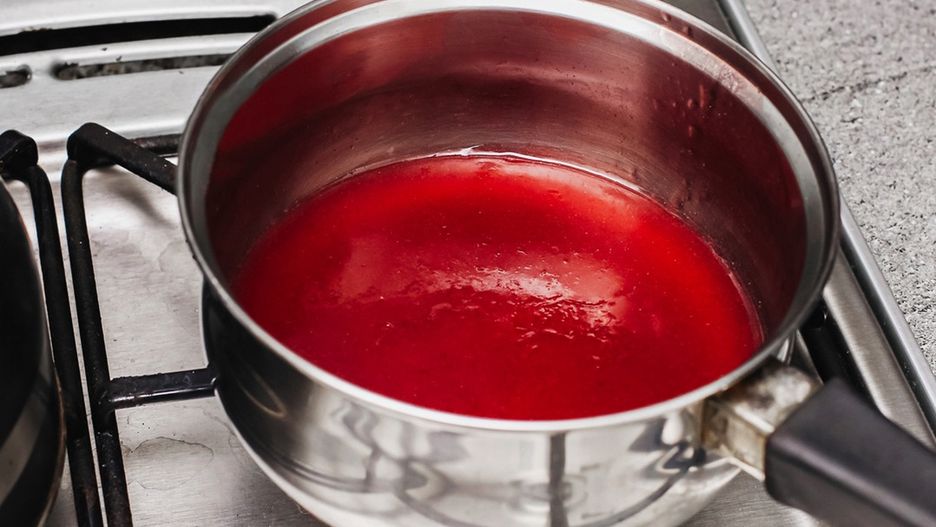 - Gotuj jeszcze chwilę, aż masa wyraźnie zgęstnieje i nabierze charakterystycznej, lśniącej konsystencji.