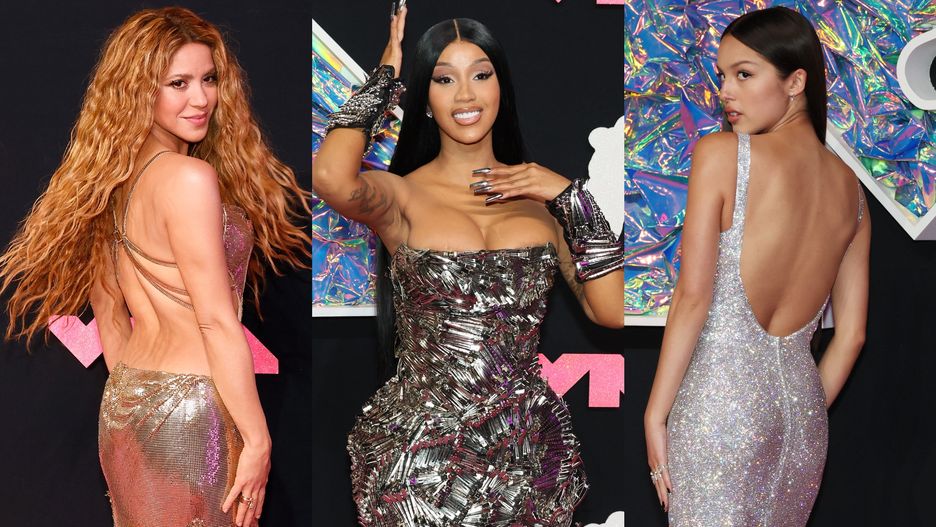 Cardi B zdecydowała się na nieco inny fason. Raperka wybrała srebrną suknię. Jednak zamiast standardowych cekinów postawiła na kreację wykonaną z... długich spinek do włosów. Sukienka o kroju tuby nie posiadała ramiączek, co mogło pokusić Cardi B do powieszenia na szyi pokaźnego naszyjnika. Zamiast tego amerykańska artystka wybrała srebrny manicure.