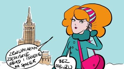 Po czwartym telefonie trochę się już zeźliłam. "Poradzisz sobie, kochanie" powiedziałam jak potrafię najmilej i wyciszyłam aparat. Warszawa przywitała mnie dobrą pogodą. Wszędzie zwały śniegu, ale nie za mroźno, nie za ciepło. Z dworca pomknęłam do Pałacu Kultury, żeby przypomnieć sobie jak oglądałam Warszawę z góry w wieko lat dziesięciu i aby zorientować się w topografii. Kiedy zmarźniętymi rękoma robiłam na trzydziestym piętrze zdjęcia, zadzwonił telefon.