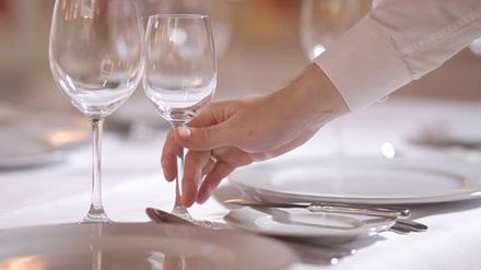 Na stole stawiamy trzy kieliszki: największy to kieliszek do wody, który jest nazywany gobletem, średni – kieliszek do czerwonego wina, najmniejszy – kieliszek do białego wina. Do serwowania wody możemy zamiast gobletu możemy podać szklankę, wtedy jest ona najmniejsza ze wszystkich naczyń. Jako pierwszy z trzech kieliszków stawiamy goblet, jego nóżka powinna znaleźć się w prostej linii nad łyżką. Niżej po prawej stronie nieco po skosie stawiamy kieliszek do wina białego; na końcu, wyżej - kieliszek do wina czerwonego. Kieliszki powinny tworzyć trójkąt.
