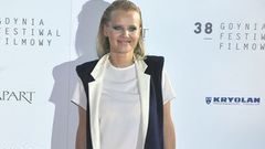 Joanna Kulig postawiła na minimalizm w najlepszym wydaniu. Modna biała sukienka i dłuższa grafitowa kamizelka to kreacja dla nowoczesnych eleganckich kobiet, które chcą wyglądać dobrze w każdej sytuacji.