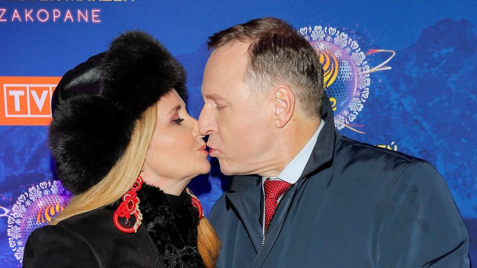 Jacek Kurski na każdym kroku podkreśla, jak ważna jest dla niego rodzina. U jego boku w sylwestrową noc nie mogło więc zabraknąć ukochanej żony Joanny. Widać, że wybranka prezesa TVP coraz swobodniej czuje się na salonach. Para nie szczędziła sobie czułości pod imprezową sceną.