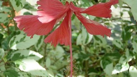 - Hibiscus schizopetalus – ‘Latarnia Japońska’ - afrykański gatunek, którego kwiaty mają silnie powcinane, prawie pierzaste płatki.