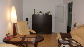 Jeśli chodzi o ustawienie, to nie jest źle, zważywszy jak długi i wąski jest to pokój, w dodatku przechodni. Zmieniłabym jedynie stół na coś bardziej nowoczesnego i powiesiłabym na ścianach parę obrazów. Sporych w jasnych ramach i w kolorystyce beżów i brązów, ewentualnie czarno białe grafiki lub fotografie. Do takiej kolorystyki oczywiście lepiej pasowałyby ciemne, drewniane drzwi.