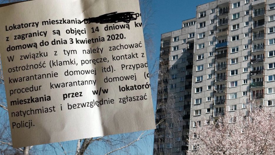 "Lokatorzy mieszkania… po powrocie z zagranicy objęci są 14-dniową kwarantanną do dnia 3 kwietnia 2020. W związku z tym, trzeba zachować szczególną ostrożność (klamki, poręcze, kontakt z osobami w kwarantannie domowej itd.). Przypadki łamania procedur kwarantanny domowej (opuszczenie mieszkania przez ww. lokatorów) należy natychmiast i bezwzględnie zgłaszać w GIS i na policji".