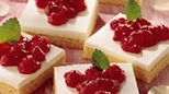 Na każdy kawałek nałóż trochę dżemu z porzeczek, udekoruj listkami melisy.