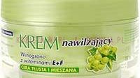 Krem nawilżający wzbogacony ekstraktami roślinnymi oraz koktajlem witamin E + F. Witamina E zwana "witaminą młodości" zwalcza wolne rodniki odpowiedzialne za starzenie się skóry. Witamina F chroni przed szkodliwymi czynnikami środowiska i przed utratą wilgoci. (Cena: 7,80 zł).