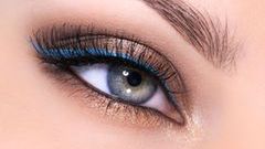 Wzdłuż górnej linii rzęs namaluj błękitną kreskę przy użyciu pastelowego eyelinera.