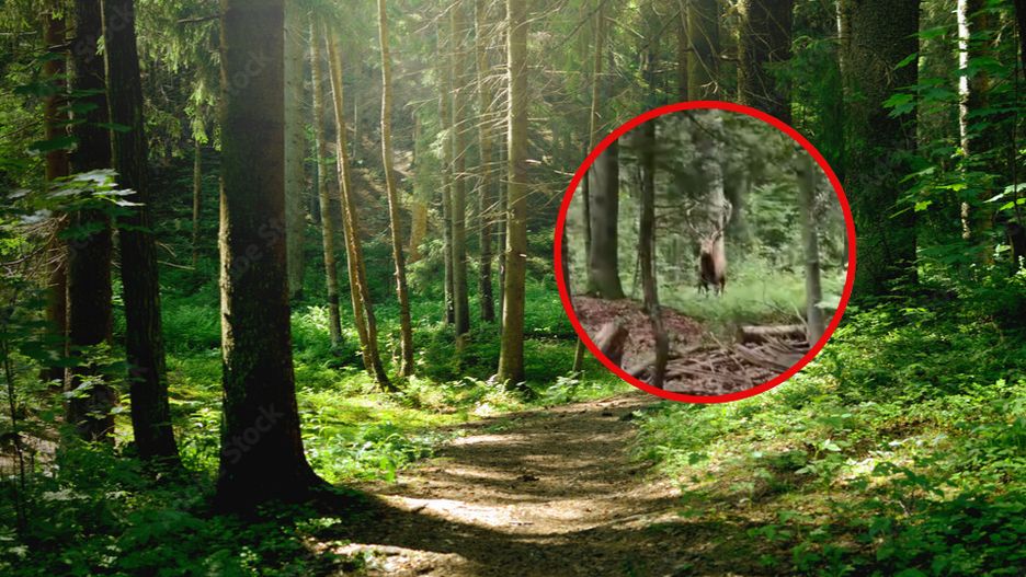 Na nagraniu najpierw słychać charakterystyczne ryki jeleni, rozchodzące się po lesie. Po chwili spośród drzew wyłania się samiec jelenia, który na moment wchodzi na leśną ścieżkę, a następnie czujnie oddala się z powrotem w głąb lasu. Całe zdarzenie trwa zaledwie kilkanaście sekund.