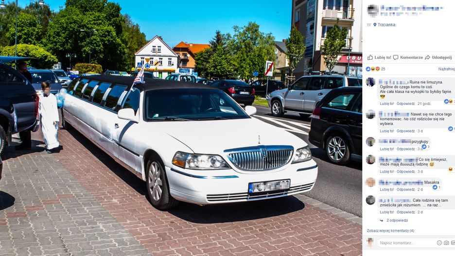 "Jezusowi pewnie opadła szczęka z wrażenia" – to tylko jeden z wielu ironicznych lub oburzonych komentarzy, które zjawiły się pod zdjęciami limuzyny. "Sezon komunijny uważamy za rozpoczęty", głosił podpis pod fotografiami. Inne komentarze odwołują się zwłaszcza do prowincjonalnej estetyki: "wieś", "wiocha", "wiochmeństwo".