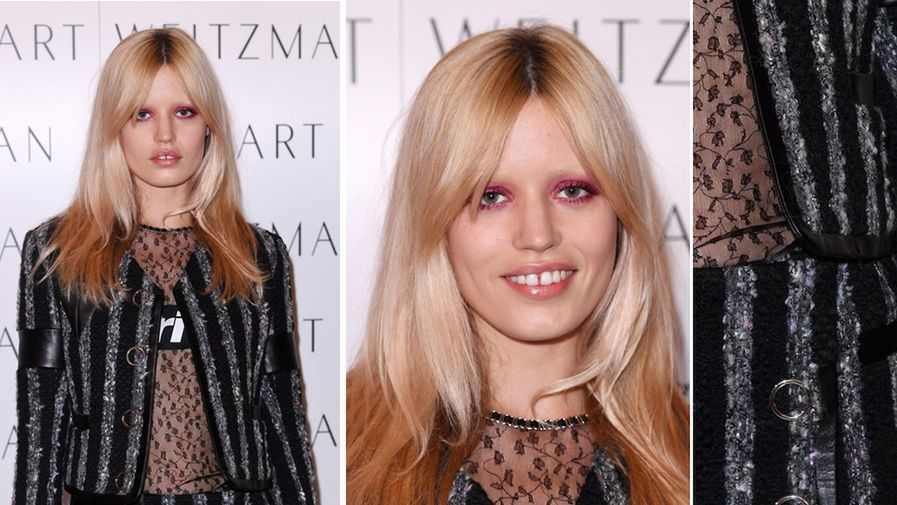 Córka Micka Jaggera, której uroda często porównywana jest do słynnej aktorki Brigitte Bardot, postawiła na efektowny makijaż w glamrockowym stylu – rozjaśnione brwi i oczy podkreślone mocnym różowym cieniem. Tego rodzaju odważne pomysły w wielu przypadkach mogą okazać się ryzykowne. Przy nietuzinkowej urodzie i wyrazistym stylu Georgii takie makijażowe eksperymenty nie działają na jej niekorzyść.