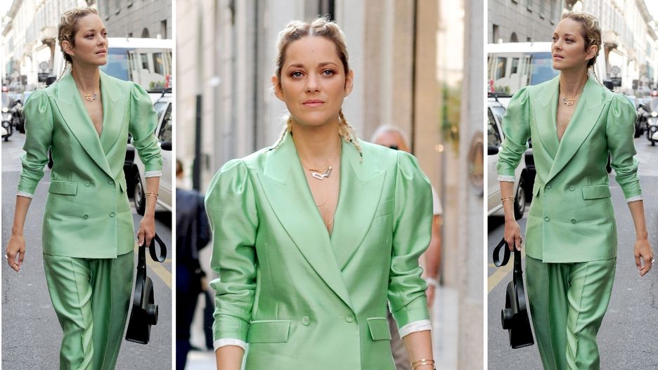 LOOK OF THE DAY: Marion Cotillard w pistacjowym garniturze oversize