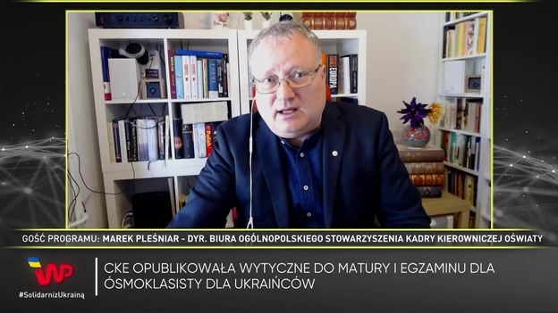 - Przede wszystkim należy Ukraińcom pozwolić samym się uczyć. Oni mają zdalną edukację uruchomioną zaraz po rozpoczęciu wojny - mówił w programie WP Newsroom Marek Pleśniar, dyrektor biura Ogólnopolskiego Stowarzyszenia Kadry Kierowniczej Oświaty. - Widać, że w Polsce jest ogromna liczba nauczycieli ukraińskich. Jest też dużo chętnych, którzy już deklarują, że widzą taką potrzebę, aby mieli wsparcie państwa polskiego w tym, by Ukraińcy sami zajęli się edukacją swoich uczniów, nie włączając ich w polski system edukacji.