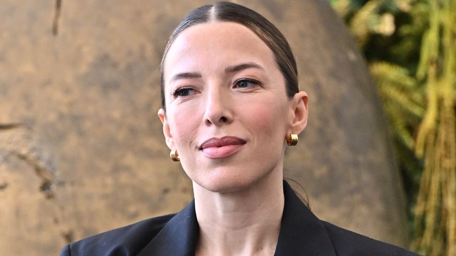 Najbardziej charakterystycznym elementem była baskinka, która nie tylko modelowała sylwetkę, lecz także pełniła funkcję dekoracyjną. Po jednej stronie falbana przechodziła w dużą, trójwymiarową różę. Ten wyrazisty detal stanowił mocny akcent stylizacji i nadawał jej modowego charakteru. Kwiatowe aplikacje to zresztą trend widoczny w kolekcjach wielu marek w ostatnich sezonach.