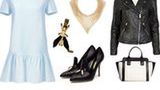 W tym sezonie modne jest łączenie pasteli z mocnymi, charakterystycznymi dodatkami, dlatego zaproponowana przez nas stylizacja jest mieszanką romantycznej i rockowej dziewczyny. Delikatna sukienka w kolorze nieba zestawiona ze skórzaną, czarną ramonseską i złotymi dodatkami nabiera charakteru. To propozycja dla odważnych i pewnych siebie kobiet, które lubią postawić na swoim.