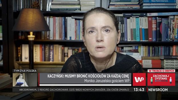 Wczorajsze wystąpienie prezesa Kaczyńskiego, wzbudza ogromne emocje. Monika Jaruzelska wskazuje, dlaczego zdecydował się on na taki krok. Choć publicystka jest całym sercem ze strajkującymi kobietami, widzi, jakie zagrożenie przyniosły akty wandalizmu, pisanie po murach wyzwisk i wchodzenie do kościołów. Nie dziwi się więc, że prezes PiS wykorzystał je w przemowie: "Trzeba się temu, jeszcze raz powtarzam, przeciwstawić. To obowiązek państwa, ale także obowiązek nasz, obowiązek obywateli. W szczególności musimy bronić polskich kościołów. Musimy ich bronić za każdą cenę". Monika Jaruzelska dostrzega, kto stał się teraz wrogiem numer jeden dla prezesa PiS, i jak wykorzystuje to w swoich wypowiedziach.