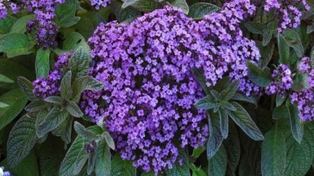 Heliotrop peruwiański (Heliotropium peruvianum, znany także jako H. arborescens lub H. corymbosum) to przez lata zapomniany, ale powracający do łask krzew o pięknych, pachnących kwiatach, zwabiający latem roje kolorowych motyli. Podobnie jak słonecznik, zwraca się otwartymi kwiatami do słońca – stąd jego druga, rzadziej używana nazwa – słonecznica peruwiańska.