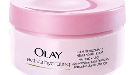 OLAY Active Hydrating Krem na dzień dla cery normalnej i suchej– „szklanka wody” dla skóry, zawiera glicerynę i wazelinę. Krem wnika w skórę chroniąc ją przed utratą naturalnego nawodnienia i ulepszając jej umiejętność utrzymania nawilżenia.