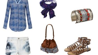 Przetarty jeans, luźna koszula we wzory i sandały z rzemieni to look, który kojarzyć się może z latem, festiwalami muzycznymi i szaleństwem. Do niebieskości dobierz jasno-brązowe dodatki np skórzaną torbę-tobołek, a jeśli bez biżuterii nie ruszasz się z domu to postaw na etniczne srebro.