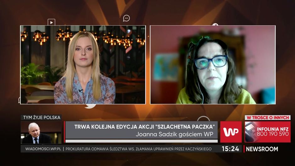 Joanna Sadzik, dyrektorka Szlachetnej Paczki, opowiedziała o nowej grupie osób, które potrzebują wsparcia. Mowa o ludziach, którzy jeszcze do niedawna dobrze sobie radzili, ale z powodu pandemii znaleźli się w trudnej sytuacji życiowej. - Jest to np. pani Jola, która pracowała w osiedlowym sklepie, ale obroty tak zmalały, że została bez pracy - opowiada gość programu "Newsroom" WP. W kolejnej części rozmowy Joanna Sadzik wspomniała o osobach publicznych, które również i w tym roku chętnie włączają się do akcji. - Są z nami artyści czy ludzie gór (...) paczki GOPR-owe są niezwykłe, bo docierają do miejsc, gdzie nikt inny, kto nie ma sprzętu, by nie dotarł - podkreśliła.