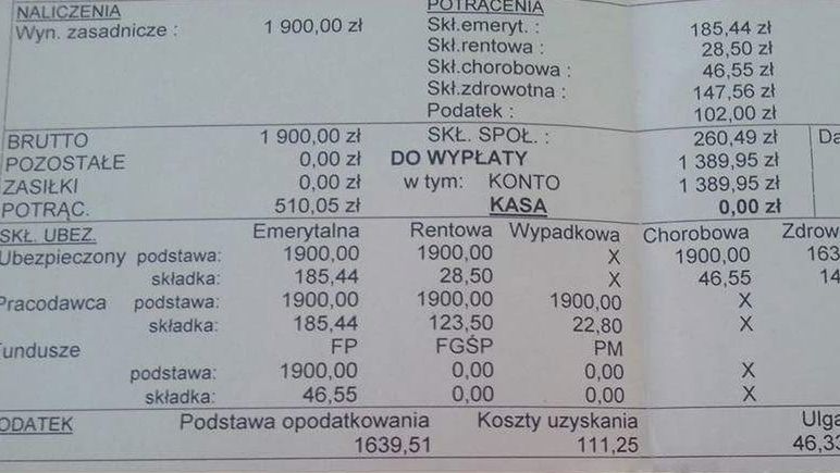 Pielęgniarka z 14-letnim stażem pracy w szpitalu powiatowym w oddziale chirurgii ogólnej z chirurgią onkologiczną i ortopedią: „Posiadam kursy kwalifikacyjne z pielęgniarstwa chirurgicznego (dodatek 50 zł brutto) i opieki długoterminowej, kurs specjalistyczny z RKO i leczenia ran (dodatek 20 zł brutto) oraz leczenia bólu ostrego, kurs przetaczania krwi i preparatów krwiopochodnych i kilka innych dokształcających. Podstawa wymiaru czasu pracy 1900 zł brutto, łącznie z dodatkami za kursy. Przesyłam również pasek ze słynną podwyżką 4x400, a raczej 239,91 netto jako dodatek do pensji.”