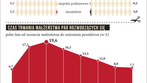 Zdaniem ankietowanych wystarczający powód do rozwiązania małżeństwa to przede wszystkim: brutalne traktowanie członków rodziny przez jednego z małżonków (95 proc. wskazań), opuszczenie rodziny (86 proc.) oraz alkoholizm współmałżonka (75 proc.). Prawie dwie trzecie ankietowanych (65 proc.) za wystarczającą przyczynę rozwiązania małżeństwa uznaje zdradę małżeńską, 59 proc. wskazuje w tym kontekście niedobranie seksualne, a 57 proc. - niezgodność charakterów małżonków.