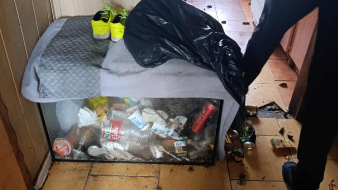 Funkcjonariusze wezwani na miejsce weszli do mieszkania dzięki matce jego lokatorki, która miała klucze. Widok za progiem przypominał scenę z horroru – wszędzie walały się porozrzucane rzeczy, podłoga była zabrudzona odchodami, a pośród bałaganu leżało bezwładne ciało martwego psa. Obok niego siedział drugi — żywy, ale skrajnie wychudzony i przerażony.