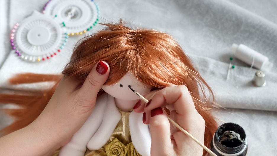 Przygotowanie lalki jest nieco bardziej czasochłonne, ze względu na to, że poza samą maskotką musisz zadbać o jej włosy. Najprostszym sposobem będzie wycięcie ich z filcu. Jeśli jednak chcesz, aby twoje dziecko miało lalkę z włosami, które będzie można czesać i dowolnie splatać, możesz spróbować je wyszyć. To praca na kilka godzin, niemniej istnieją szybsze sposoby. Wystarczy pociąć włóczkę na kilkadziesiąt równych kawałków, a potem połączyć je na środku, przyklejając lub przyszywając ją do paska materiału. W ten sposób powstanie przedziałek i dwa pasma po obu jego stronach. Teraz wystarczy już tylko doszyć włosy do głowy lalki paskiem do dołu, i gotowe.