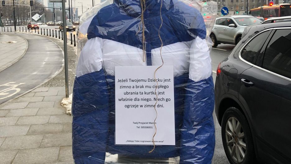 "Jeśli twojemu dziecku jest zimno, a brak mu ciepłego ubrania, ta kurtka jest właśnie dla niego. Niech go ogrzeje w zimne dni. Twój przyjaciel Marcin" – brzmi napis na kartce przyczepionej do odzienia, którego zdjęcie trafiło do sieci.