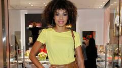 Jemmye Caroll wybrała obcisłą spódnicę z czerwonej skóry i założyła do niej krótki top w graficzny wzór. Takie połączenie wygląda bardzo nowocześnie i intrygująco. Efekt końcowy psują jednak zbyt masywne czarne sandały na koturnach. Buty wyglądają zbyt ciężko.