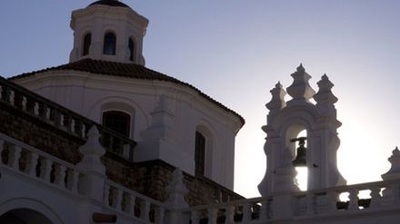 Wspinamy się na dach Iglesia de San Felipe Neri. Olbrzymi taras zdobią dwie wierze z zawieszonymi w środku dzwonami. Idealne miejsce na chwilę odpoczynku i kontemplacji. Tutaj, w blasku promieni chowającego się za górami słońca, podziwiamy panoramę miasta, architektoniczną perełkę Boliwii.
