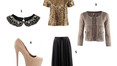 W Wigilijny wieczór postaw na błysk. Zrezygnuj z tradycyjnych białych bluzek i zamień je na cekinowe topy. Porzuć także marynarki, które są sztywne i niewygodne na tego typu okazje. Na wierzch włóż delikatnie mieniący się sweterek. Zestaw możesz uzupełnić o najmodniejszy dodatek tego sezonu - kołnierzyk, który idealnie komponuje się ze zwiewną spódnicą i błyszczącą górą. Jeśli cały wieczór spędzasz w domu z bliskimi, platformy zmień na wygodne baletki.