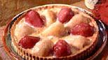 zalać śmietaną roztrzapaną z jajkami, cukrem waniliowym i kryształem, zalać gruszki,