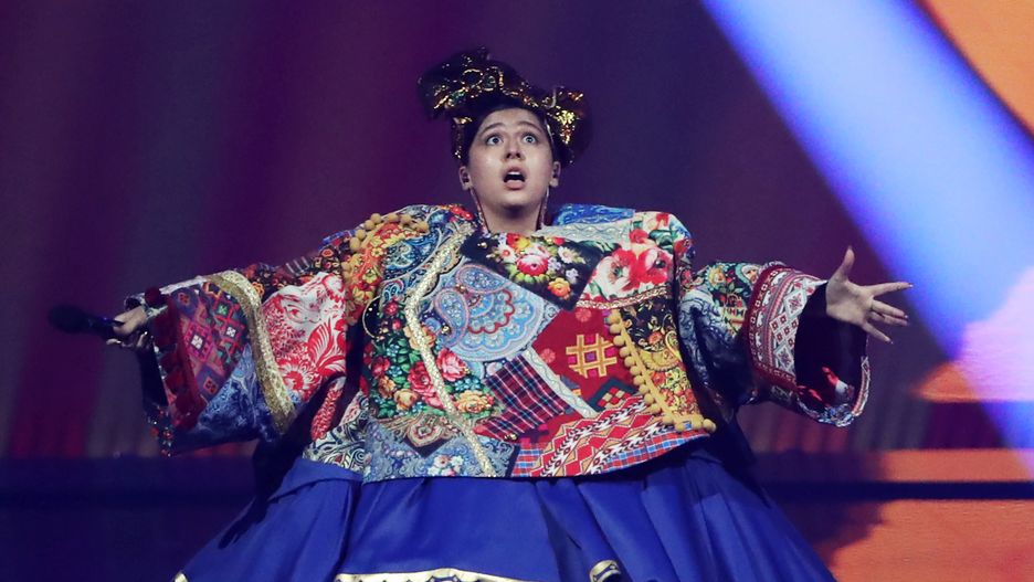 Rosjanka zaczęła swój występ w przerysowanej sukni, która nawiązuje do tradycyjnych rosyjskich strojów i niesie skojarzenia z matrioszką. Po pierwszych kilku taktach wokalistka wyskakuje jednak ze zbyt obszernej kreacji, by skończyć swój występ w kombinezonie z napisem: “Rosyjska kobieta”.