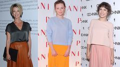 Plisy w liczbie mnogiej są już same w sobie bardzo ozdobne, dlatego też doskonale czują się w towarzystwie prostych bluzek czy luźnych sweterków w minimalistycznym stylu. Efektownie wyglądają zwłaszcza w zestawieniach z ubraniami utrzymanymi w różnych odcieniach tego samego koloru. Tak jak to robi Aleksandra Hamkało, która pojawiła się w różowej stylizacji.